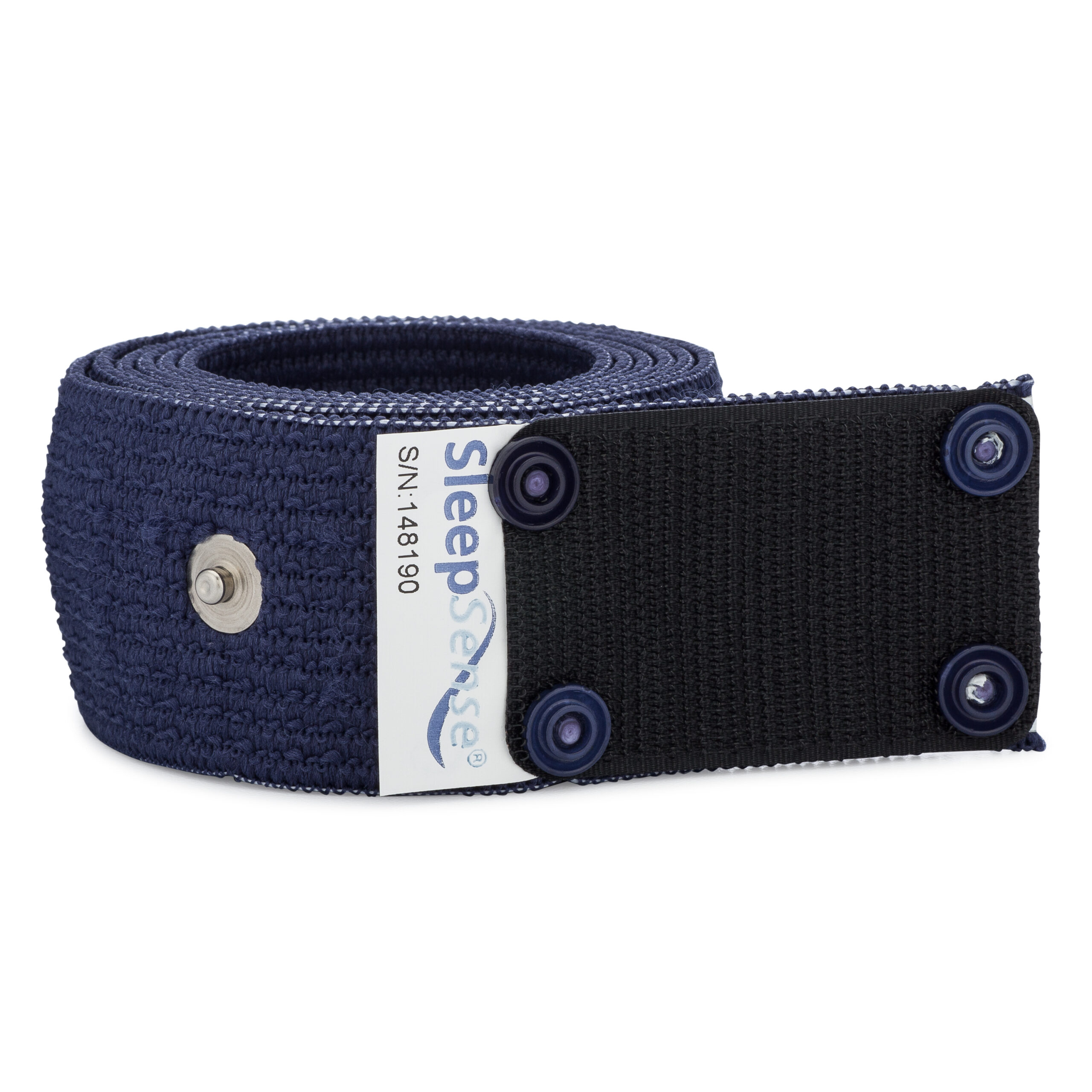 9003-L120 / Semi-Reusable Inductive Plethysmography Belt, Adult X-Large – Blue (2/pack) SleepSense Inductive Belts are designed to work with SleepSense Inductive Interface Cables.  When used together, the inductance of the inductive belts is exactly proportional to the cross section of the belt’s closed loop around the body; it therefore changes as the patient breathes.  The electronics in the system or interface box measure these inductance changes to generate a signal that is the most accurate and reliable replication of respiration waveforms.  Inductive belts easily connect to any PSG system compatible with inductive effort sensors through a dedicated SleepSense Cable. SleepSense Semi-Reusable Inductive Belts are made of soft, stretchy material and are available in multiple sizes ranging from Child Extra Small-Adult XXL.  Hook & loop tabs on these belts attach anywhere on the belt itself, making adjustments very easy and keeping the profile slim and comfortable.  These belts have a low cost per use, are easy to clean and are made to last roughly 70 uses before needing replacement. The 9003-L120 Semi-Reusable Inductive Plethysmography Belt is approximately 120cm in length. For use with SleepSense Inductive Interface Cables Available in white or blue 60 Day Warranty